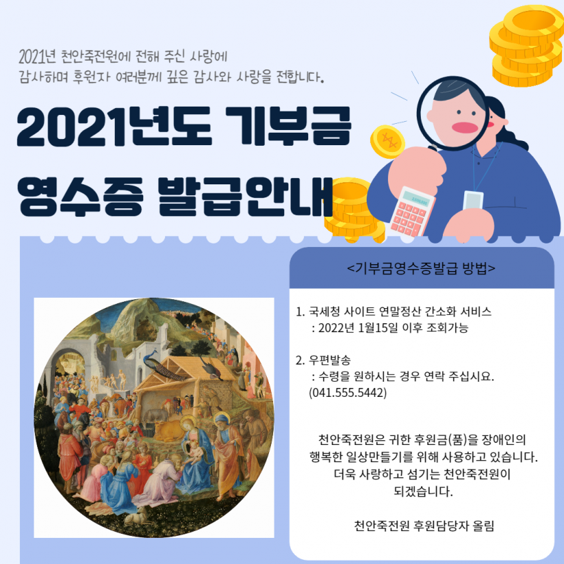 2021년 기부금영수증 발급안내 페이지 정보 작성자 운영자 작성일22-01-10 18:49 조회8,138회 댓글0건 이전글 다음글 목록 본문 댓글목록 등록된 댓글이 없습니다. 이전글 다음글 목록