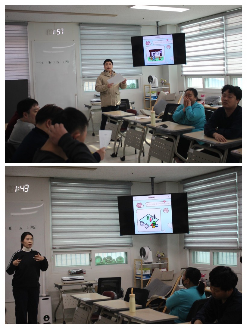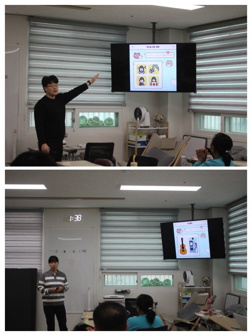 각 프로그램 담당자 별로 AAC를 이용해 프로그램에 대한 설명을 진행하니, 이용인들이 설명회에 흥미를 보이며 집중하는 모습을 보였습니다.