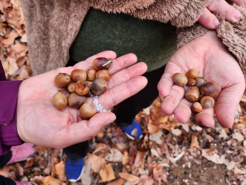 또 이번엔 바닥에 떨어진 예쁜 도토리까지 줍는