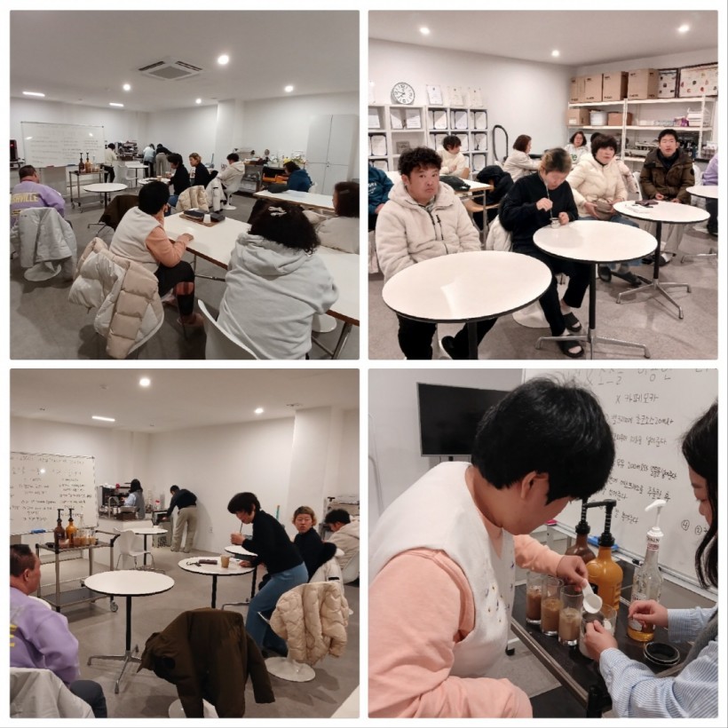 첫 수업에 참여하지 못해 너무나도 아쉬워했던 호영님이 오늘 첫 수업을 받으면서 진지하게 임하는 모습입니다. 오늘도 본인이 만들고 싶은 커피 종류를 정하고 만들어서 맛보고 마치기 까지 열정을 다하는 가족들! 오늘도 화이팅 했습니다.