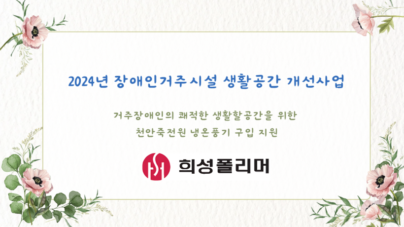 매년 후원금 지원을 통해 천안죽전원 개선 사업에 도움을 주시는 희성 폴리머(주)에게 감사 인사를 전합니다!