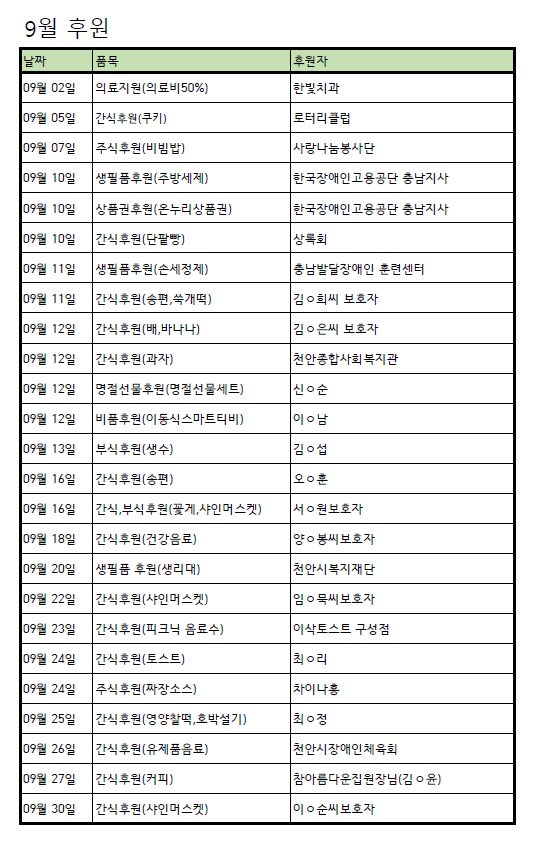 [후원] 9월 후원품 페이지 정보 작성자 운영자 작성일24-10-02 11:30 조회1,005회 댓글0건 관련링크 목록 본문 9월 후원해주신 모든 후원자님께 다시 한번 감사드립니다~! 댓글목록 등록된 댓글이 없습니다. 목록