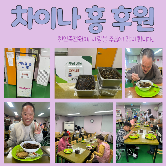 [후원] 차이나 홍 페이지 정보 작성자 운영자 작성일24-04-24 14:26 조회1,135회 댓글0건 관련링크 목록 본문 2024.4.24. (수)월 1회 정기적으로 차이나홍에서 짜장 소스를 후원해 주십니다.가족들 모두 맛있게 드셨답니다.정기적 후원으로 천안 죽전원에 주시는 사랑에 항상 감사드립니다. 댓글목록 등록된 댓글이 없습니다. 목록