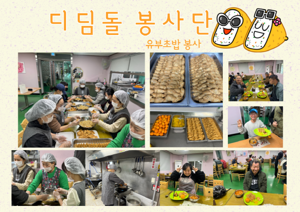 [자원봉사] 디딤돌봉사단 페이지 정보 작성자 운영자 작성일23-11-18 12:15 조회968회 댓글0건 관련링크 목록 본문 23.11.18(토)디딤돌봉사단에서 유부초밥을 준비해 주셨습니다.점심으로 정성이 들어간 유부초밥을 먹으니 더욱더 맛있는 점심식사 시간이 되었습니다.봉사해 주신 봉사자분들께 다시 한번 감사드립니다 :) 댓글목록 등록된 댓글이 없습니다. 목록