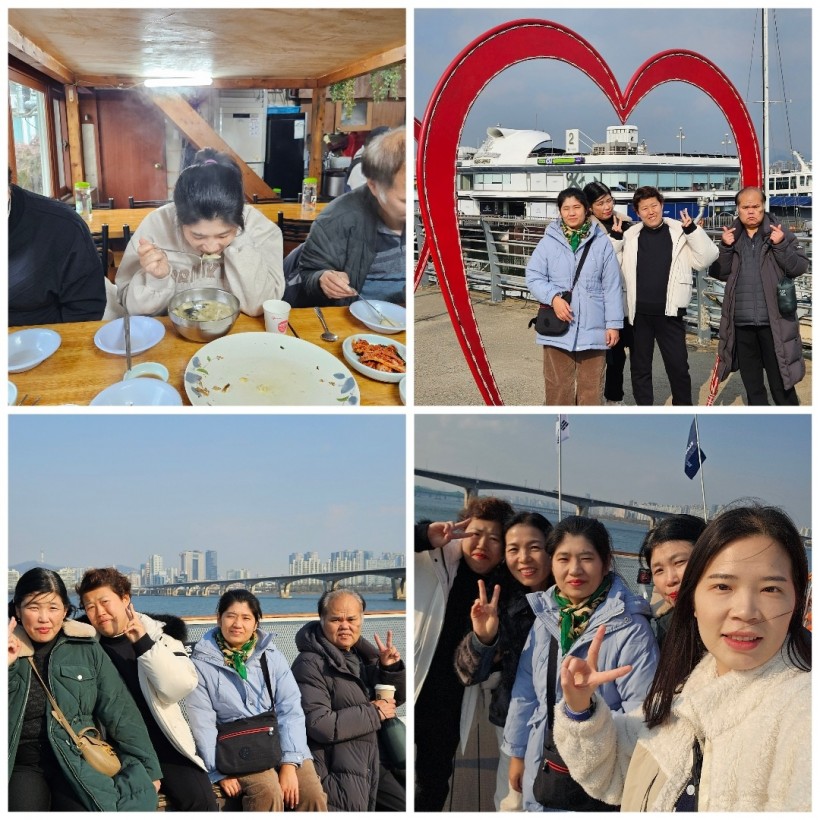 한강에 가서 크루즈도 타는 경험을 하였습니다. 추울까 걱정했지만 따뜻한 날씨 속에 바람을 맞으며 즐겼습니다.