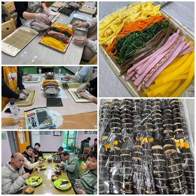 금일 소나무회 김밥봉사자들 오셔서 김밥을 맛있게 만들어주셨습니다.