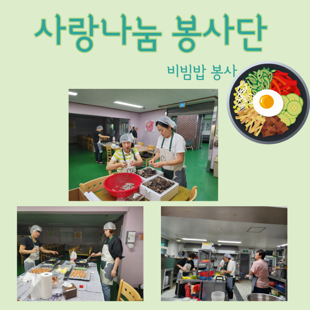 [자원봉사] 사랑나눔 봉사단 페이지 정보 작성자 운영자 작성일23-09-04 15:54 조회810회 댓글0건 관련링크 목록 본문 23.09.02(토)사랑나눔 봉사단에서 맛있는 비빔밥 봉사를 진행해 주셨습니다.재료부터 구입하고 손질까지 모든 부분을 처음부터 준비하여 비빔밥을 만들어 제공해 주십니다.정성이 듬뿍 들어있어 더 맛있는 비빔밥!사랑과 정성을 담아 비빔밥을 제공해 주셔서 감사합니다 :) 댓글목록 등록된 댓글이 없습니다. 목록