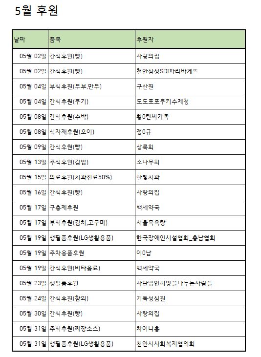 [후원]5월 후원품 페이지 정보 작성자 운영자 작성일23-06-08 17:38 조회626회 댓글0건 관련링크 목록 본문 5월 후원해주신 모든 후원자님께 다시 한번 감사드립니다~! 댓글목록 등록된 댓글이 없습니다. 목록
