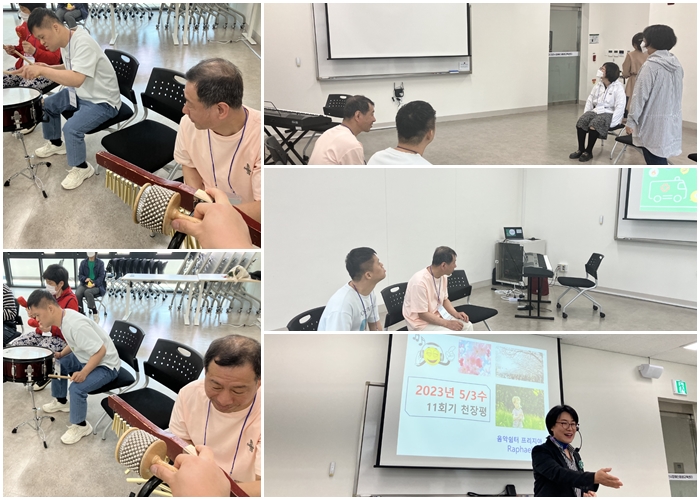 이0한씨와 안0엽씨께서 장애인평생교육원에서 음악치료 수업에 참여하셨어요.