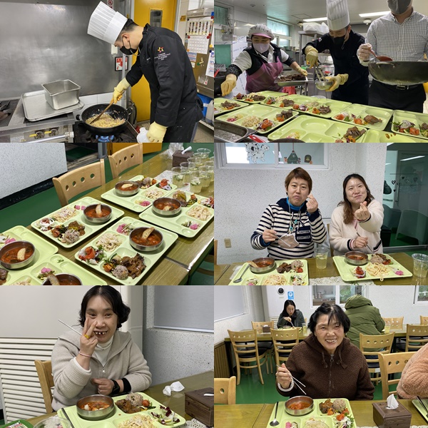 크리스마스 특식^^ 페이지 정보 작성자 김미정 작성일22-12-26 11:30 조회583회 댓글0건 관련링크 목록 본문 12월 23일 점심메뉴로 크리스마스 특식이 제공되었습니다.쉐프님께서 방문하셔서 맛있게 만들어 주셨습니다.전날 미리 재워둔 채끝살스테이크, 꽃처럼 핀 연어샐러드, 부드러운 크림 파스타 후식으로 상큼한 라임에이드까지!! 거주인분들 모두 너무 행복해 하셨어요.감사합니다.^^ 댓글목록 등록된 댓글이 없습니다. 목록