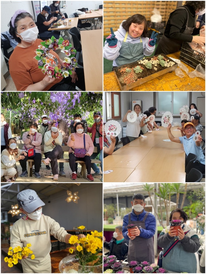 나다운사회적협동조합의 지원으로 죽전원 거주장애인분들이 다양한 꽃과 식물들을 접하며