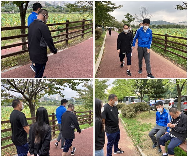 내용: 10월 첫 건강걷기는 저희 서광 씨와 화순 씨만 하게 되었습니다. 청수공원을 3바퀴 쉬지 않고 잘 걸으셨고 돌아오는 길에 편의점에서 음료수와 간식 하나 구입하고 오셨습니다. 시원한 날씨에 쾌적한 공원에서 걷기운동 잘 하고 오셨습니다.