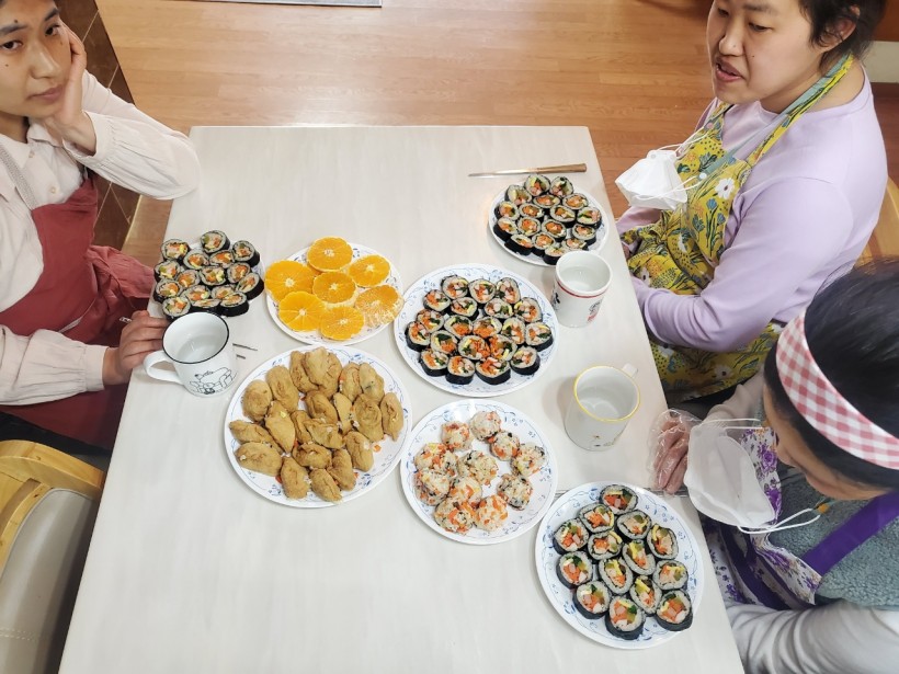 602호는 정성스러운 김밥과 유부초밥을 만들고 902호는 스파게티를 예쁘게 플레이팅을 하여 맛있는 식사를 하였습니다.