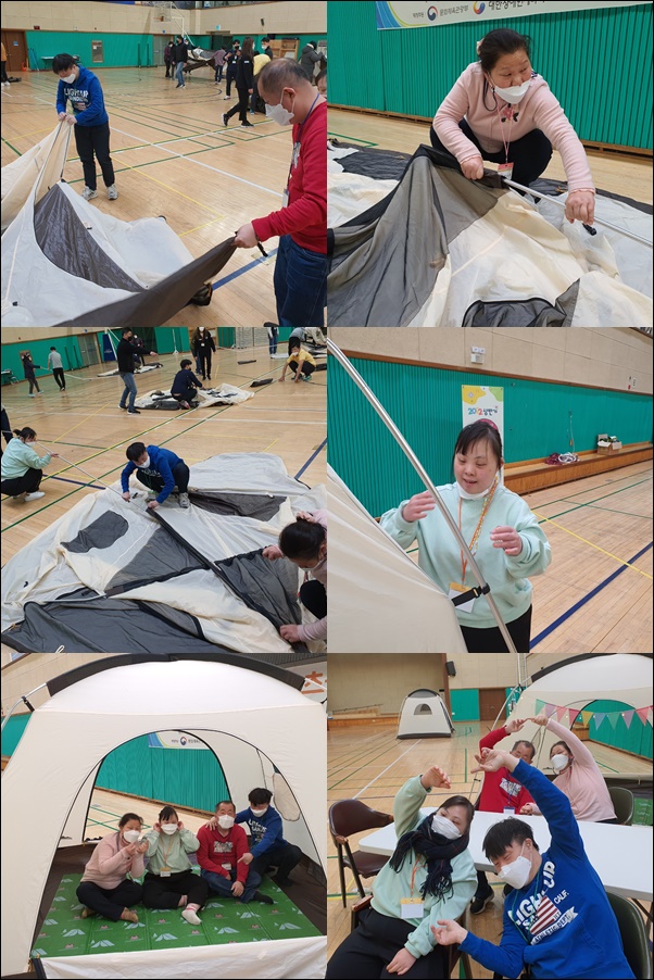 뉴 스타트캠프 참여 페이지 정보 작성자 운영자 작성일22-02-18 14:35 조회537회 댓글0건 관련링크 목록 본문 2022.02.15(화)천안시장애인종합체육회, 국립중앙청소년수련원에서 주최하는2022 상반기 뉴 스타트 캠프에 참여하였습니다.프로그램으로 안전교육 및 텐트 설치 등 다양한 프로그램 활동을 진행하였습니다.참가하신 가족들 모두 적극적으로 참여하며 즐거운 시간을 보냈습니다. 댓글목록 등록된 댓글이 없습니다. 목록
