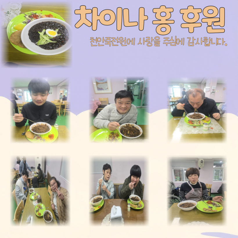 [후원] 차이나 홍 페이지 정보 작성자 운영자 작성일25-02-27 10:26 조회885회 댓글0건 관련링크 목록 본문 25.02.27매달 차이나 홍에서 저희 가족분들께 맛있는 짜장소스를 후원해주고 계십니다.항상 따뜻한 마음으로 만들어주신 따뜻한 음식에 감사합니다. 댓글목록 등록된 댓글이 없습니다. 목록
