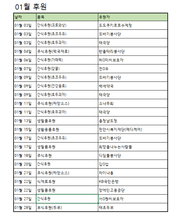 [후원] 01월 후원품 페이지 정보 작성자 운영자 작성일25-02-04 10:52 조회1,016회 댓글0건 관련링크 목록 본문 25년 새해 01월에도 많은 후원품을 주셨습니다! 항상 감사드리고 25년 을사년 무탈한 한해 보내시기 바랍니다! 댓글목록 등록된 댓글이 없습니다. 목록