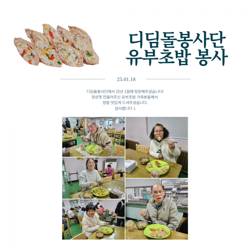 [자원봉사]디딤돌봉사단 페이지 정보 작성자 운영자 작성일25-02-05 15:49 조회833회 댓글0건 관련링크 목록 본문 25.01.18디딤돌봉사단에서 봉사활동을 와주셨습니다.항상 감사드리며 행복한 하루 보내시기바랍니다. 댓글목록 등록된 댓글이 없습니다. 목록