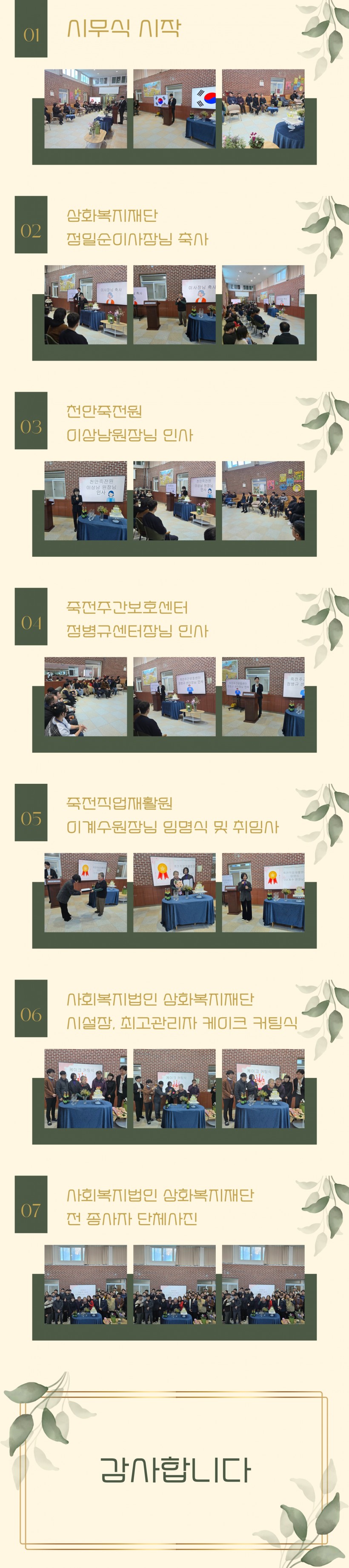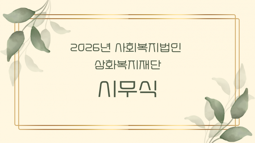 2026년 사회복지법인 삼화복지재단 시무식 페이지 정보 작성자 운영자 작성일26-01-02 17:56 조회430회 댓글0건 관련링크 목록 본문 2026년 사회복지법인 삼화복지재단 시무식 진행하였습니다.2025년 잘 마무리 진행하였고 새롭게 2026년 시작하였습니다.2025년에 사랑과 나눔, 후원, 봉사를 진행해주신 모든 분들께 감사드리며 2026년에도 잘 부탁드립니다.새해 복 많이 받으세요! 댓글목록 등록된 댓글이 없습니다. 목록