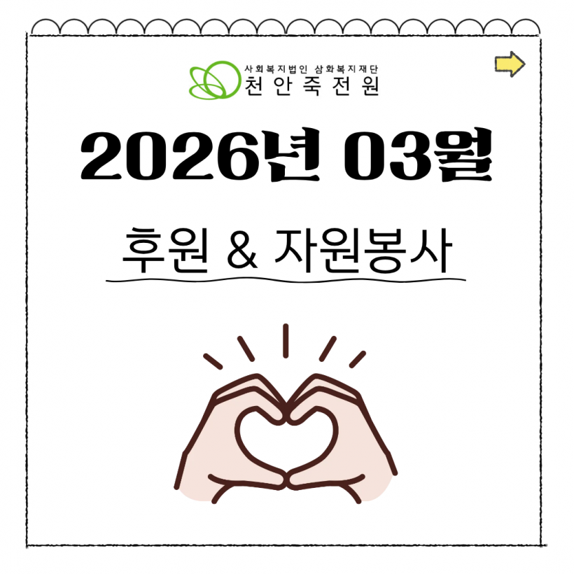[2월]후원&자원봉사 페이지 정보 작성자 운영자 작성일26-03-13 11:13 조회22회 댓글0건 관련링크 목록 본문 2026년 2월 후원 및 자원봉사입니다.감사합니다 댓글목록 등록된 댓글이 없습니다. 목록