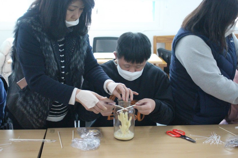 산호병에 나무젓가락을 활용해 틀도 만들어주고