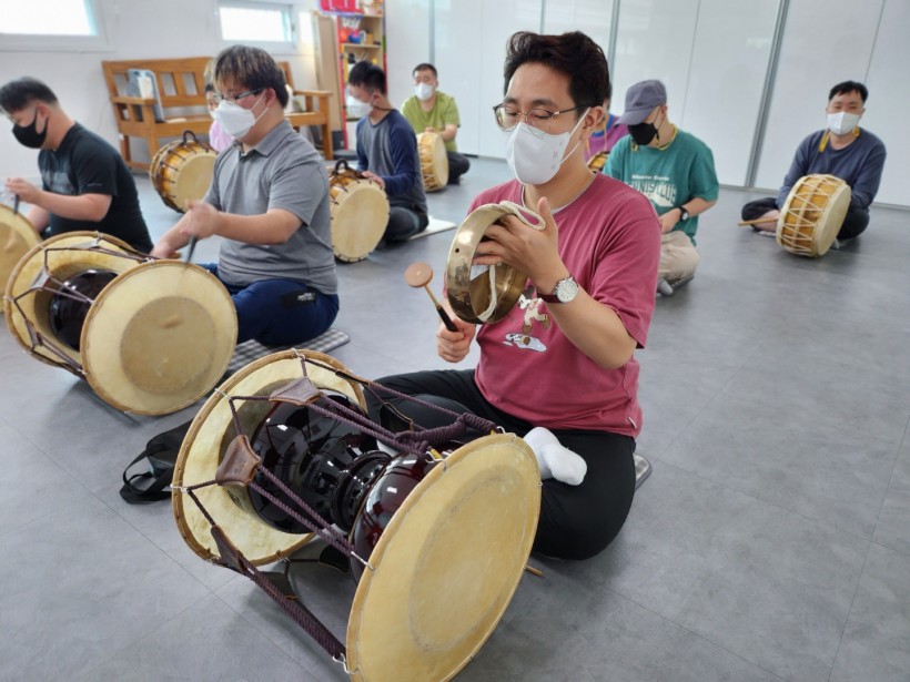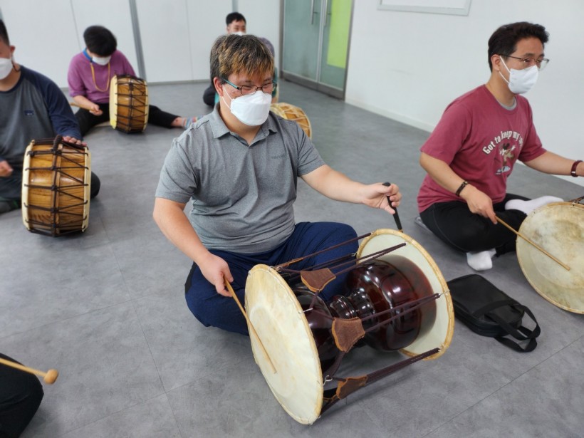 요가와 마찬가지로 매주 1회 진행하고 있는데 장구와 북,