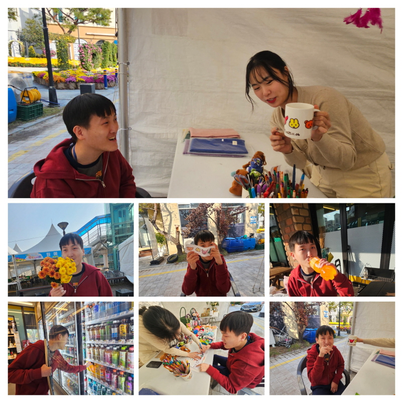 선선한 바람이 코끝을 간지럽히던 어느 가을날, 이*현 이용인과 함께 아산 지중해마을 국화꽃 축제를 다녀왔습니다.