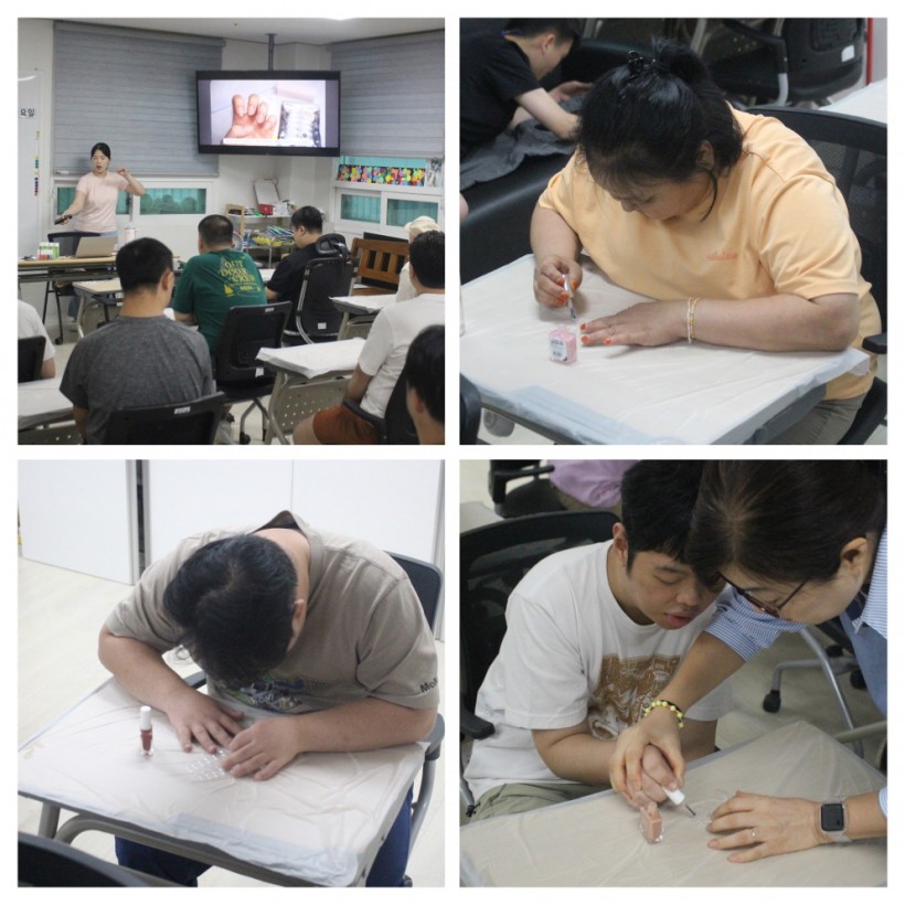 저희 센터에서는 오! 마이 뷰티 프로그램을 통해 이용인들과 함께 네일아트 체험 시간을 가졌습니다.