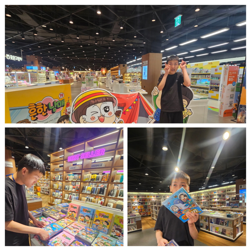 식사 후에는 서점을 방문해 관심 있는 책을 찾아보고 직접 구입해 보았고, 센터로 돌아온 뒤에는 마트에서 고른 간식을 꺼내 동료들과 함께 나누었습니다.