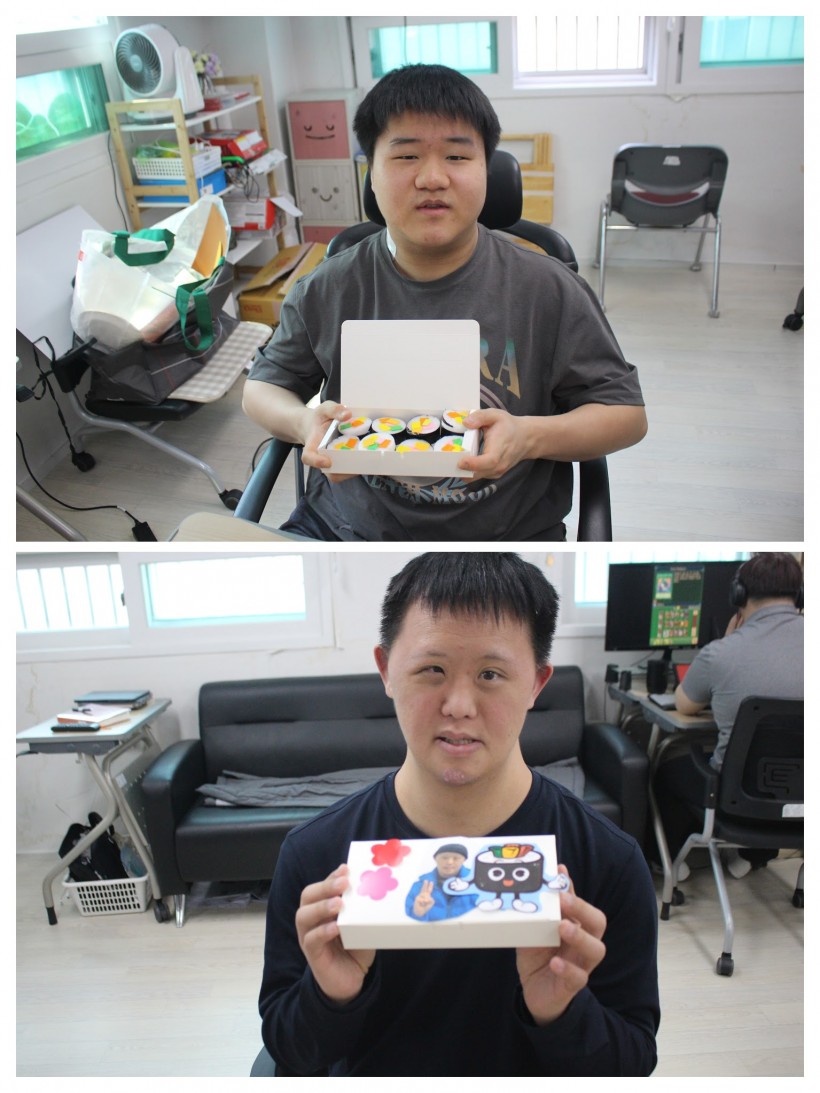 백업과 전기테이프 등 다양한 재료를 활용해 김밥을 표현하며, 이용인들만의 창의적인 도시락을 완성하였고, 색색의 부직포로 당근, 오이 계란등을 재현한 속재료들을 붙이며 웃음이 넘치는 시간이 되었고, 서로의 작품을 자랑하며 즐거운 분위기 속에서 활동을 진행하였습니다.