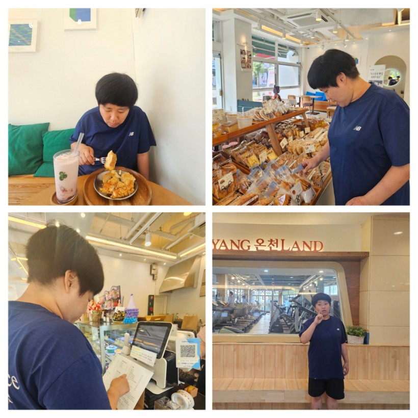 온천랜드 활동 후에는 인근에서 맛집으로 유명한 빵집을 방문해 이용인이 직접 먹고 싶은 음료와 빵을 고르고 맛보는 즐거운 시간도 가졌고, 하루 일정 내내 자신이 원하는 활동에 참여하며 성취감과 만족감을 느낄 수 있는 시간이 되었습니다.