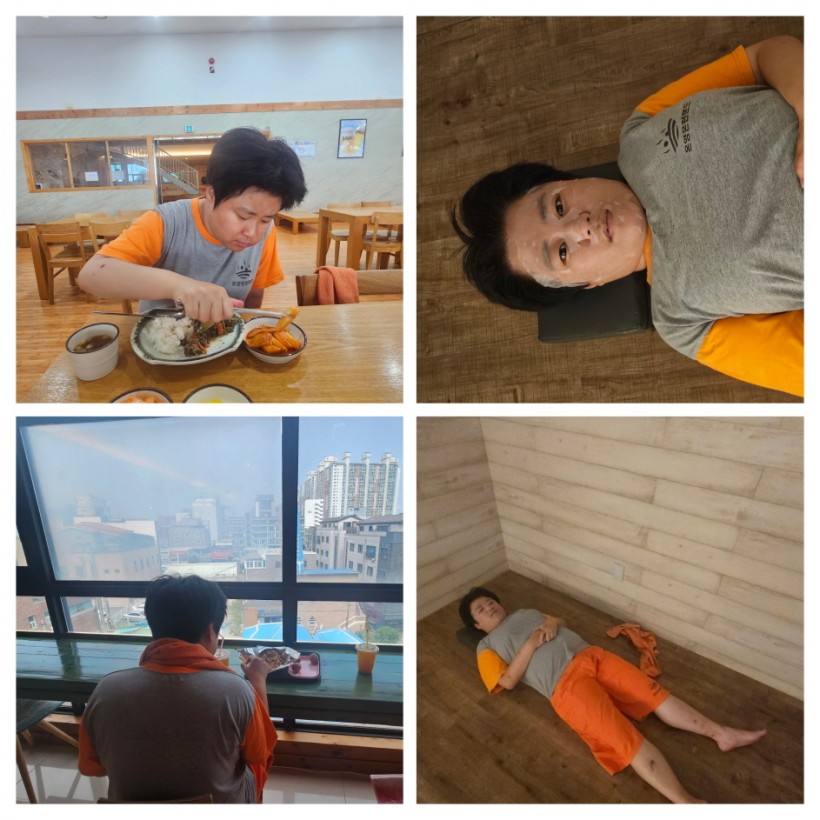 찜질 후에는 직접 선택한 간식을 먹고 잠시 휴식 시간을 갖은 뒤 직접 선택한 점심 식사를 하며 여유로운 시간을 보냈고, 이후에는 온천탕에 입장하여 피로를 풀고 몸을 깨끗이 씻는 시간도 가졌습니다.