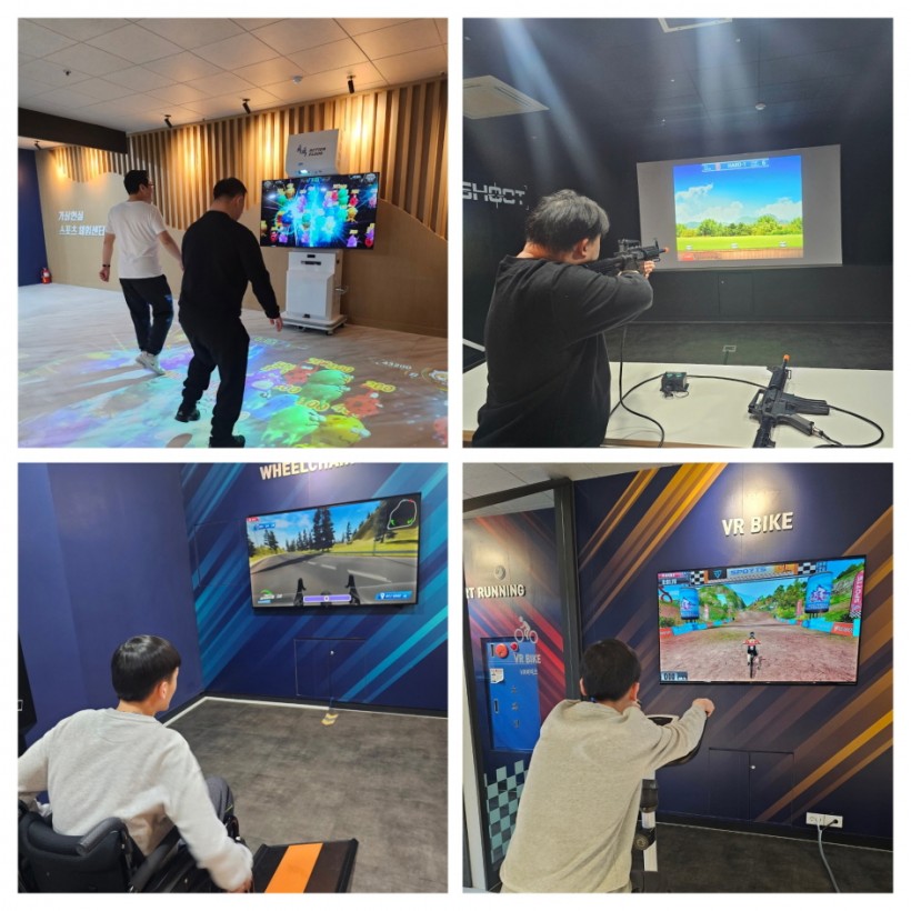 3월 신난데이 활동으로 2월 자치회의를 통해 결정된 가상현실 스포츠 체험을 하기 위해 천안시장애인종합체육관을 방문하였습니다. 입구에 들어서자 다양한 스포츠 체험에 관심을 보이는 모습을 보였고, 다양한 스포츠를 체험에 적극적으로 참여하는 모습을 보였습니다. 특히 볼링과 축구 게임에서는 집중하는 모습이 인상적이었고, 점수가 올라갈 때마다 기뻐하며 스포츠 체험을 즐기는 모습을 보였습니다.