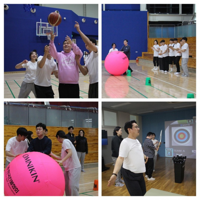 4월 첫째 주에는 특별히 '어울림 MT'에 참여하였는데, 넓은 체육관에서 농구 , 킨볼, 양궁, 사이클 운동 등 다양한 종목에 참여하며 열심히 운동도 하고, 학생들과 긍정적인 상호작용도 하며 즐거움을 느끼는 모습을 보였습니다.